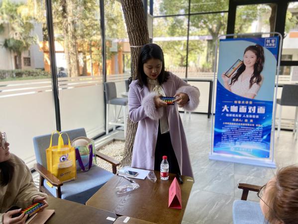 分享过程中,同学们对梁老师的创业坚守和珠心算运用充满了好奇,梁老师通过珠心算的讲解与教授与同学们展开了热烈互动,诠释了“干一行、爱一行、专一行、精一行”的工匠精神在创新创业中的应用,鼓舞同学们大胆尝试,不断提升创业本领。