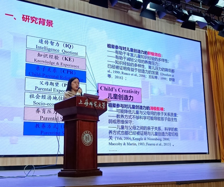 讲座伊始,陆烨分享了她关于家庭教养的研究成果,阐述了当今教育界对隔代教养和儿童创造力的关注与重视。随后,她向在场师生介绍了与创造力相关的经典理论,强调了家庭环境在儿童的创造力发展中的重要作用,并对中国育儿模式已变迁为祖辈参与模式的现状做了一定阐述。