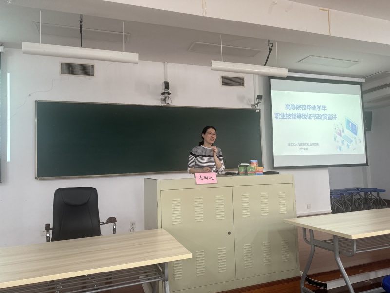 育婴师考证宣讲活动中,连励之就高等院校毕业学年职业技能等级证书政策进行宣讲,告知同学们报考需满足的相应条件,并指出考取职业技能等级证书不仅有助于提升个人技能水平,更能增强就业竞争力。
