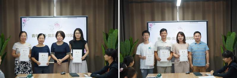 随后举行了新任青年教师-党员导师结对仪式,唐洁、周泽龙为党员导师们颁发了聘书,这不仅是对他们以往工作成绩的认可,也是对未来指导工作的期许。党员导师将带领青年教师共同进步,助力他们在职业生涯中快速成长。
