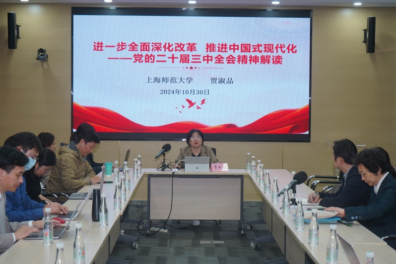 为全面深入学习贯彻党的二十届三中全会精神,10月30日,学院邀请校党的二十届三中全会精神暨教育家精神专家宣讲团成员、马克思主义学院副院长贾淑品教授作学习贯彻党的二十届三中全会精神解读报告,院领导班子成员及全体教师参加,学院党委副书记、副院长周泽龙主持。