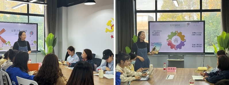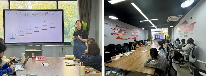 在第一期培训中,李莎莎老师通过互动提问引导志愿者们分享对绘本的认识,并巧妙引出活动主题——绘本的构成与阅读知识。她以绘本《烟花》和《爷爷总会有办法》为例,探讨图文关系及挑选绘本的技巧,强调内容需贴近幼儿生活并符合幼儿最近发展区。随后,李老师结合“绘本+”的多元课程模式,启发大家如何开展读后拓展活动,如手工、画画等。最后,她总结“大带小”“悦”读核心理念,强调在“玩”中提升认知能力。本次培训让志愿者们深入了解绘本及其拓展应用,为后续活动奠定了扎实基础。