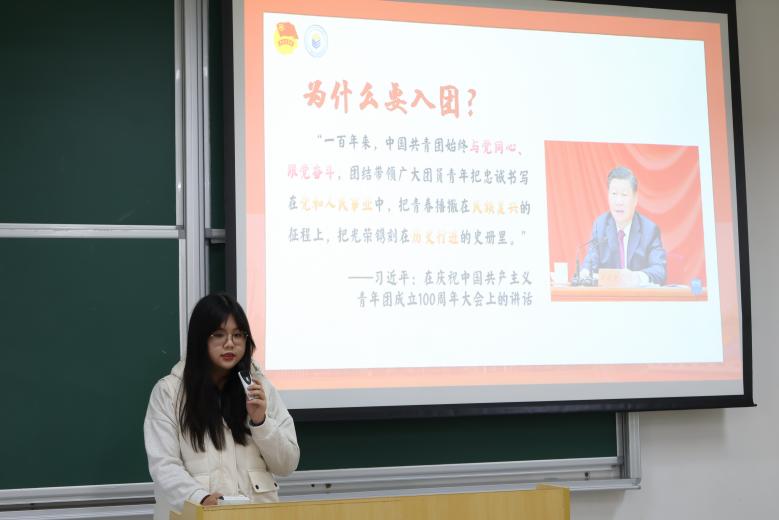 罗安依以“学团章,明团纪,筑团心”为主题,结合自身经验,带领入团积极分子逐章逐条学习团章,强调入团积极分子们应严格贯彻落实团章,端正入团动机,深刻领悟新时代共青团员的使命与担当,切实发挥先锋模范作用。