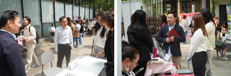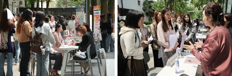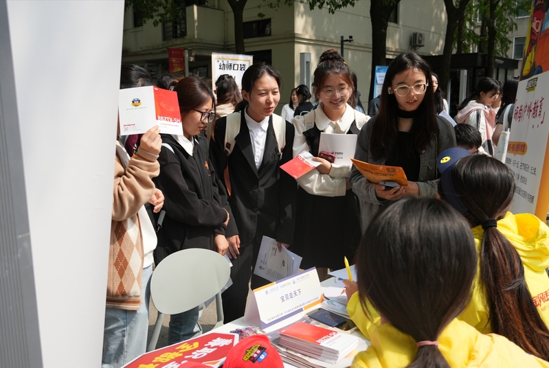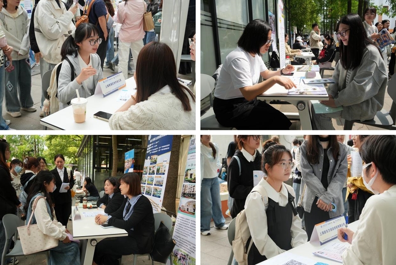 为搭建优质就业平台,深化校企合作,拓宽学生就业渠道,4月23日,学院在徐汇校区东部学生生活园区主干道举办2025届毕业生春季招聘会暨2026届实习双选会。本次活动吸引了上海市二十余家优质用人单位参会,涵盖公办幼儿园、民办幼儿园及教育培训企业,为毕业生和实习生提供了丰富的岗位选择。