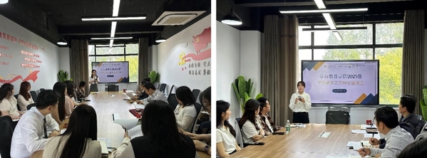 会议伊始,成功“上岸”的“考编经验宣讲”同学代表冯婧宜和黄陈仪分享了参加所在区的考编全过程。她们围绕笔试准备、面试技巧、才艺展示、心理调适、材料准备等多个方面,结合亲身经历进行深入讲解,为后续考编同学提供了经验参考。