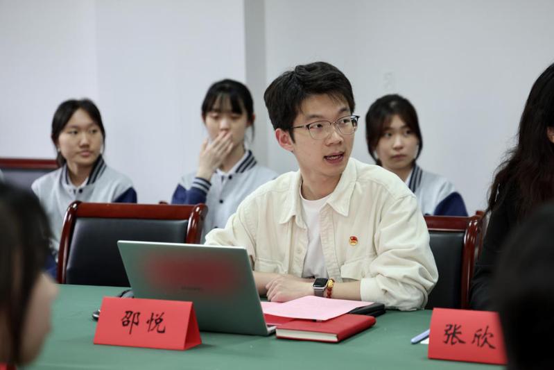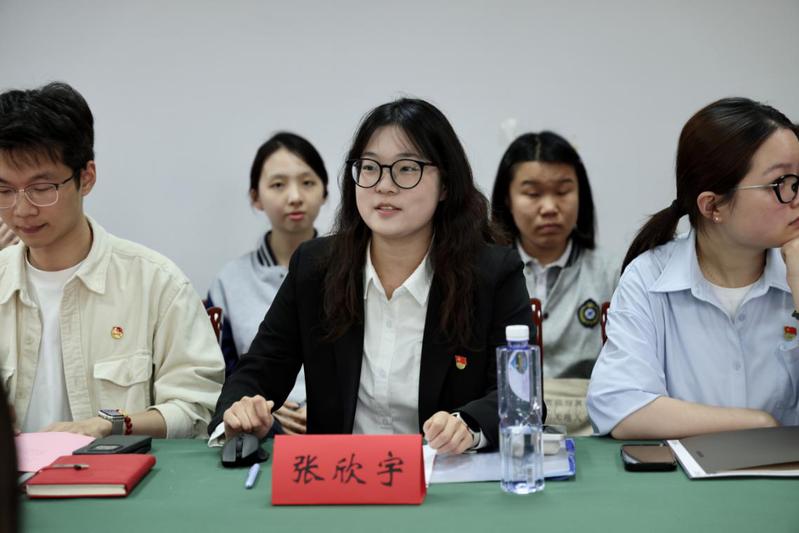 结对党员代表张欣宇结合自身参与专业学习、公益项目、社会实践以及科研创新等活动的成长经历,分享了她对党员身份的理解,号召同学们在扎根专业的同时,以青春力量服务社会、展现青年担当。