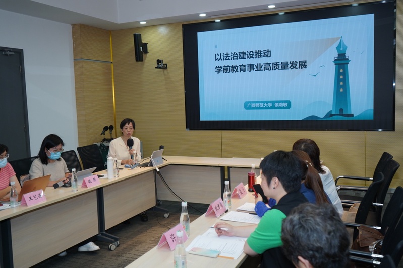 随后,中国学前教育研究会理事长侯莉敏教授作题为《以法治建设推动学前教育事业高质量发展》的主旨报告。在系统分析我国学前教育法治化历史进程的基础上,她表示,法治建设为学前教育事业发展提供有力保障,能够保障学前儿童权益、推动学前教育资源优化配置、促进学前教育质量提升。同时,学前教育法治化进程中还面临诸多挑战,学前教育工作者需要从宏观上把握学前教育的发展趋势,把教育思考放置在我国乃至全球的学前教育改革潮流中去审视研判,仰望星空的同时又脚踏实地,以切实行动践行学前教育法。