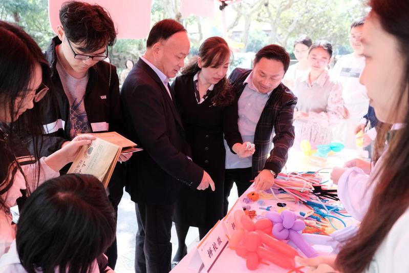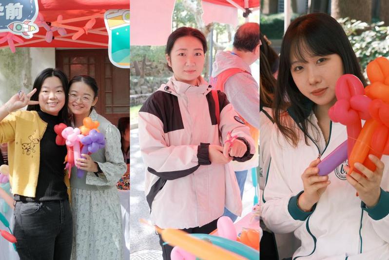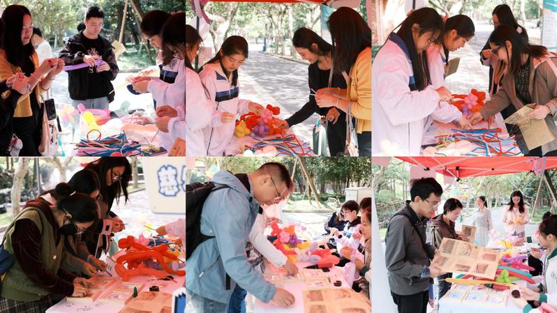 五颜六色的扭扭棒在校友手中翻飞,转眼间化作小巧的花朵、可爱的动物造型,每一件手工制品都承载着童年的纯粹与创意;拼图拼校徽环节里,校友们三五成群,凝神聚力拼接碎片,当熟悉的校徽完整呈现,往昔在校园里的求学时光也随之浮现;扎气球专区前笑语盈盈,校友们将气球扎成形态各异的作品,并纷纷合影留念。