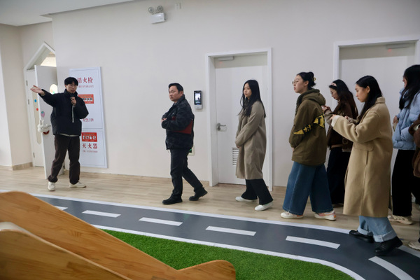 延吉幼儿园作为杨浦区学前教育示范园,以“生活化教育、游戏化成长”为办园理念,在幼儿一日活动组织、特色课程开发、家园共育等方面积累了丰富经验。在沉浸式观摩环节,同学们进入庭院沙水池、托班教室、食育室、安全体验室等教学活动现场,近距离感受幼儿园教育的真实氛围。