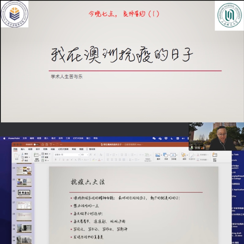 首场良师有约“云”端相伴活动邀请到的是kaiyun体育登录网页入口讲座教授、博士生导师、香港大学教育学院终身教授李辉。李辉教授以“学术人生苦与乐:我在澳洲抗疫的日子” 为主题,为同学们讲述了他在澳洲任教期间经历的抗疫故事。长期的居家隔离生活让他更加明白家人的意义和自由的可贵,逐渐形成了高度自律的习惯。隔离期间,他坚持思考和写作,基于生活实践发展探索性创新思维,在完成防疫任务的同时,也迎来自己人生的学术高产期。面对此次疫情中同学们普遍存在的心理焦虑问题,李辉教授用亲身经历总结了“抗议六大法”,即保持乐观的精神面貌、享受美食带来的愉悦心情、坚持因地制宜的运动、培养广泛的兴趣爱好、多动笔头进行写作和善于发现生活中的真善美,以此鼓励居家居寝的学生积极调试和保持乐观积极的心理状态,缓解疫情带来的焦虑和压力,提升应对困难挫折的能力。互动提问环节里,同学们就研究方向选择、学术人生思考等问题与李教授展开热烈讨论。现场师生互动交流频繁。