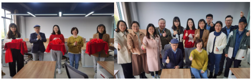 最后,在激烈的掌声中,李辉、李燕两位院长为“博士生研习室”的正式启动剪彩。全体参与者一起合影留念。